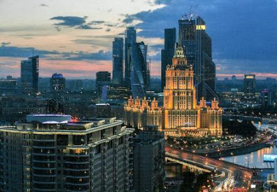 The last russian cards were all about nature and this one is just the opposite. This is a very urban view of Moscow's International Business Center. In front of the modern skyscrapers, there's a bit older building, the five-star Radisson Royal Hotel. It still maintains its historic name of Hotel Ukraina.